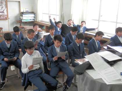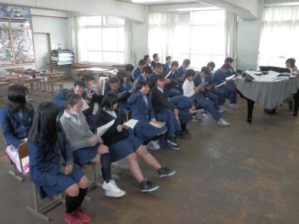 卒業式と卒業生を贈る会で歌う合唱の練習です。