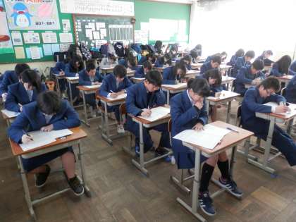 普段は明るい2−3も、流石にテストの時には「シーン!」とした中で取り組んでいます。当り前ですが…。