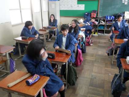6時間目、1年では「卒業生を送る会」の練習をしていました。