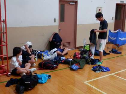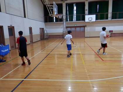 体育館を覗いてみると、男子バスケットボール部が練習を終えて、片づけをしているところでした。
