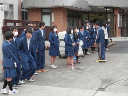 生徒会本部と委員の人たちが校門であいさつ運動を頑張っていました。