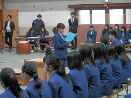 開会の言葉に続いて、生徒会本部が3年生へのメッセージを送りました。