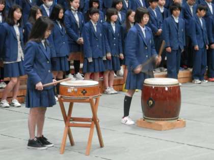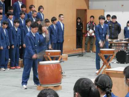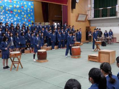 次に和太鼓の演奏です。 これには6組の生徒も加わりました。とても上手でした。