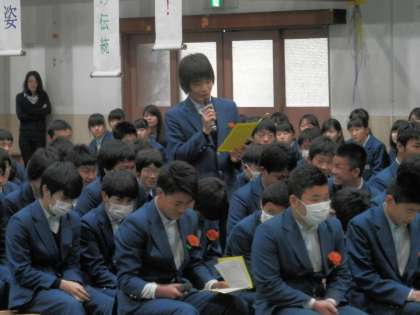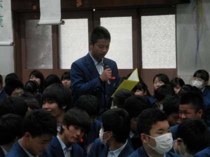 はじめに、クラスの代表が後輩へのメッセージを伝えました。