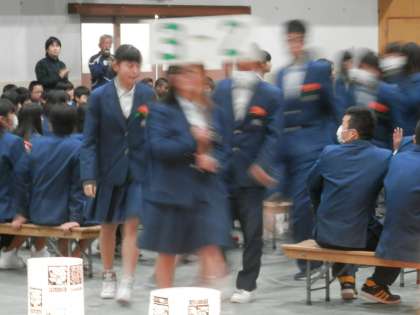 おわりの言葉に続いて、3年生が拍手の中を退場します。