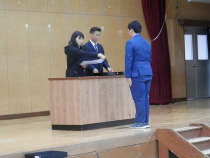 今年度から生徒一人ひとりに手渡すことにしました。多少時間はかかりますが、教職員でこの方がよいと判断した結果です。