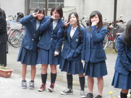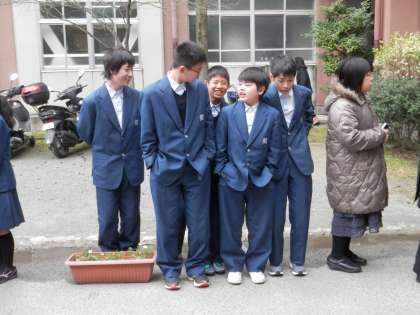在校生は、体育館から卒業生が出てくるのを花道を作って待っています。