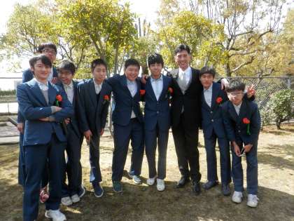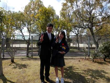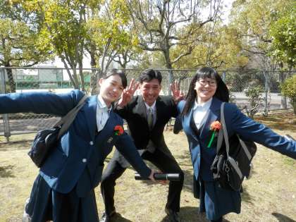 ほとんどの生徒がまだ残っています。家の人にもってきてもらったスマホを片手に写真撮影に一生懸命です。