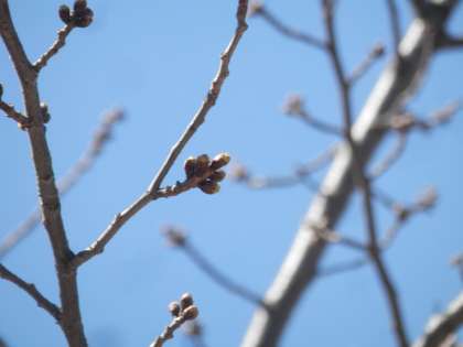 校門の桜の木が、その蕾を膨らませています。