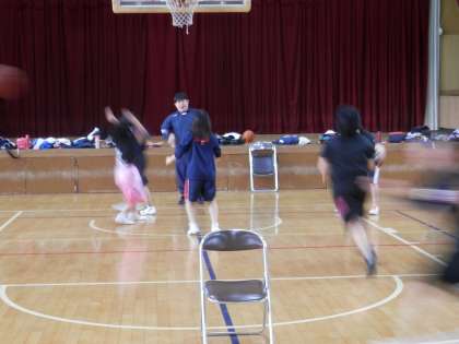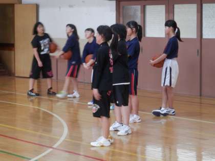 午後からの体育館では、女子バスケとボール部が活動を始めました。