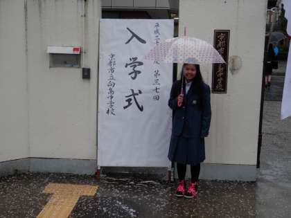今日からは、向島中学校の生徒として頑張ってね。