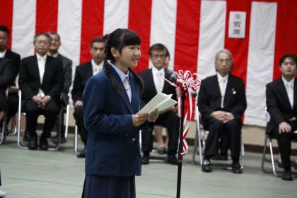 入学生宣誓と続きます。入学生代表の人は、とても表情豊かに宣誓をしました。将に自分の言葉になっていました。素晴らしかったです。