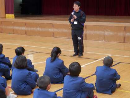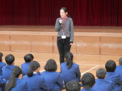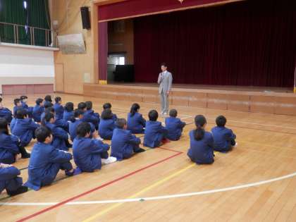 今日は、各学年1時間ずつ体育館で学年集会が持たれました。