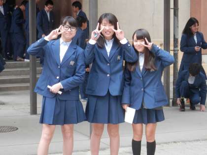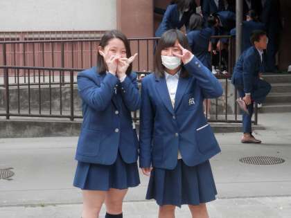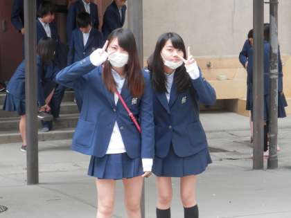 集会の後、体育館から出てきた人たちを捉えました。