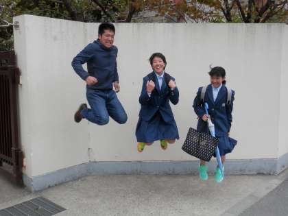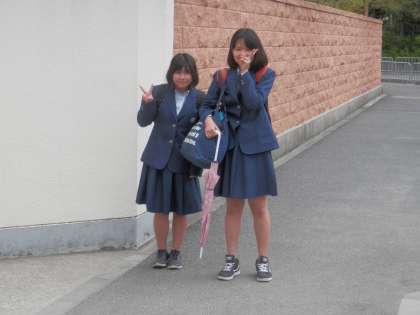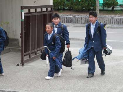 曇り空ですが、子どもたちは元気に登校してきます。