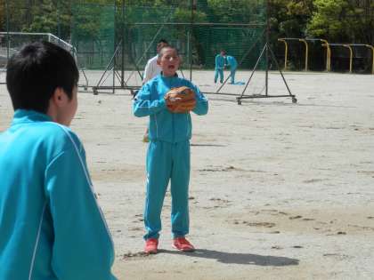 男子は、集団行動を練習した後、ソフトボールです。