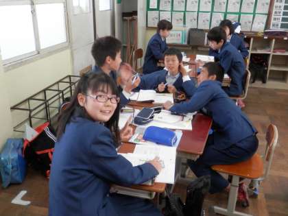 国語の時間、グループ学習に取り組んでいます。