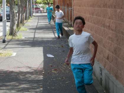 コートコンディションが悪く、学校の周りのランニングと中庭でのボレーボレーくらいしかできません。