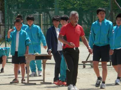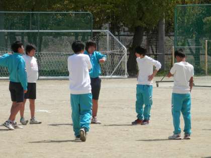 男子もスポーツテスト。今日はハンドボール投げですかね。