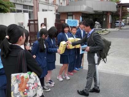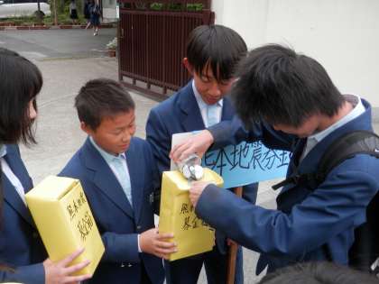 家の貯金箱をそのまま持ってきて、その全部を備金箱の中に入れてくれた生徒もいました。その後、先生が次々と募金にやってきました。