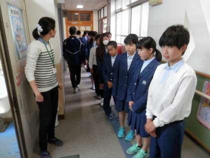 1年生は、授業の初めに耳鼻科検診がありました。