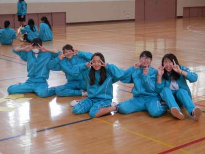 1〜3組は体育。体育館でスポーツテストです。