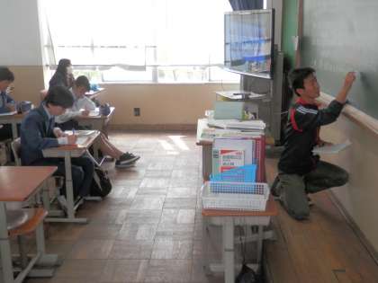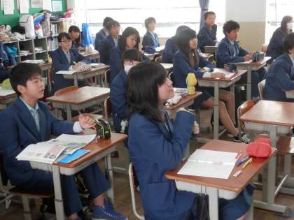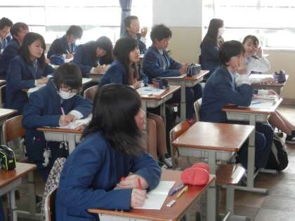 楽しく学習していました。遠くの方でピースをしている人を見つけました。こらっ!