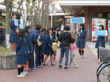 いったん下校した本校生徒が、声を聞きつけて募金にやってくる姿もありました。