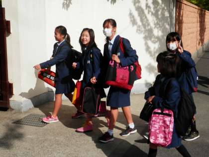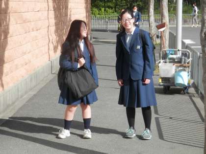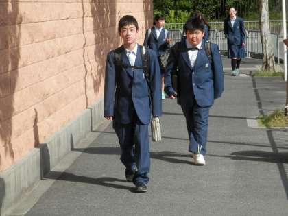 素晴らしい天気の元、生徒たちは元気に登校してきました。