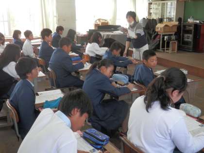2時間目、教育委員会から指導主事の先生方が来られたので各教室を案内して回りました。1−3は音楽でした。