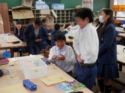 4階に1組がいない、と思って校長室に返ってきたところ、技術室に居ました。