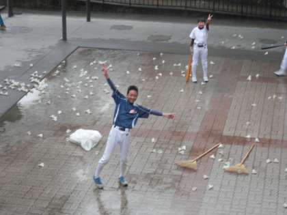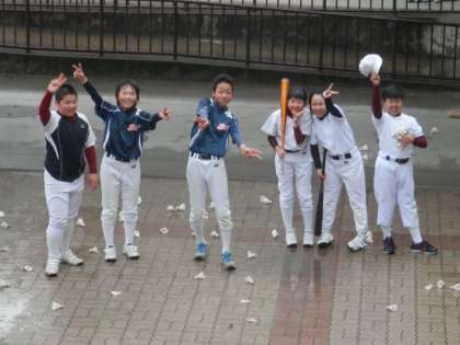 『野球部 雨中の練習』