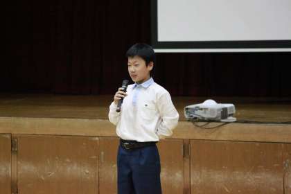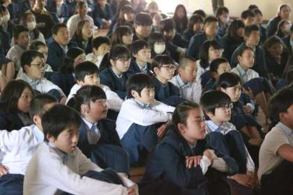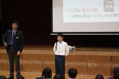 1年生、6組の生徒、2年生、3年生と人人ずつ発表してもらいました。