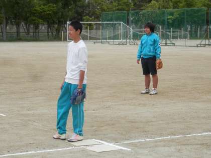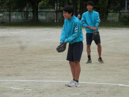 男子の体育です。今どきの中学生は、小さい頃に遊びで野球をしてないのでしょうね。上手くボールを投げたり受けたり出来ない人が案外多いのに驚きました。
