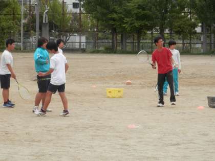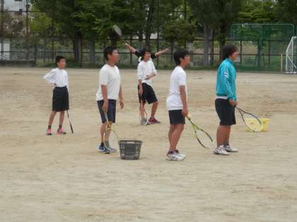 テニスコートでは男子部が練習をしています。