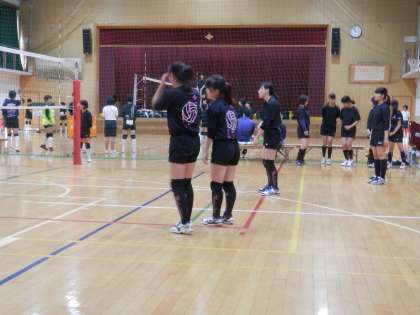 女子バレー部は、岡崎中・伏見中・滋賀県の日吉中を招いて4校で1日練習試合です。