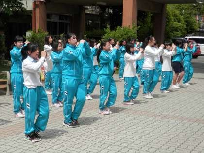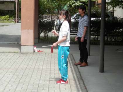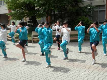 ブラスバンド部は1日練です。午後は中庭でマーチングの練習です。