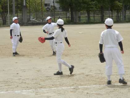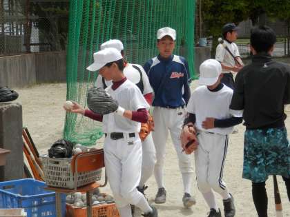 中学校から野球を始めた初心者たちも一生懸命ボールを追いかけています。