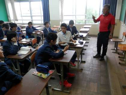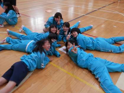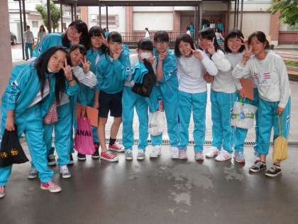 南校舎へ移ろうと渡り廊下を歩いていたところ、大きな声で呼ばれました。体育を終えて出てきた3年女子たちです。