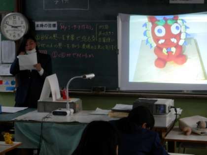 制作したシーサーの発表会です。どんな思いで作り、何処に工夫をしたか。一人ずつ発表していきます。全員の発表を聞いていたかったです。