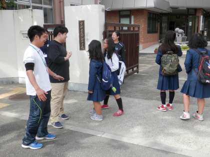 学校へ来るなり、校門に居る先生に質問をする生徒もいます。