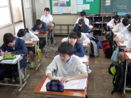 昨日まで「総括考査」のあった教科については、テストの返却と、正解答を示して間違いがないか確かめていました。