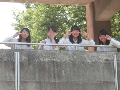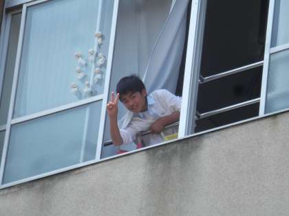 中庭に居ると、4階の窓や2回の渡り廊下から声がかかりました。