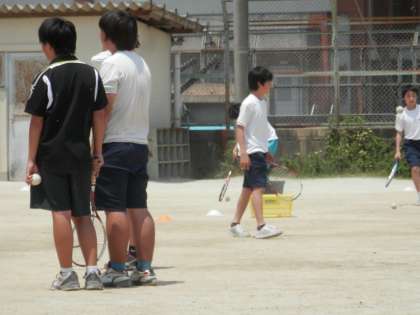 テニスコートでは男女の部が練習しています。