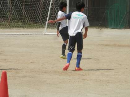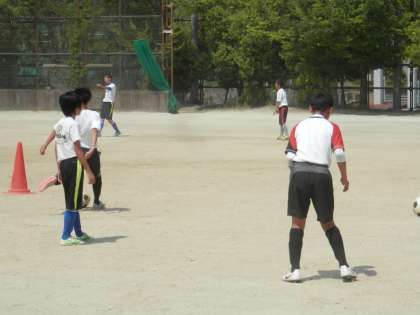メッチャ暑いグランドでは、サッカー部が活動しています。こまめに水分補給をしながらやって下さいネ。