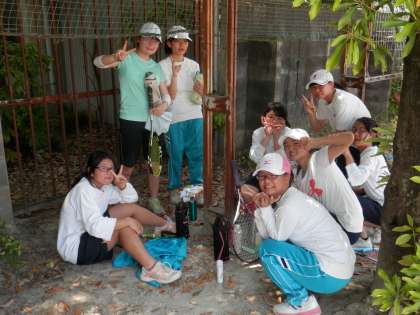 女子テニス部は、ちょうど給水のための休憩時間に撮影です。