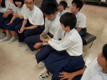 6組の皆さんは、1時間目がプラネタリュウム、2時間目が展示を見ながらの学習です。2時間目、熱心に化石の学習をしていました。
