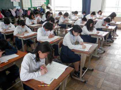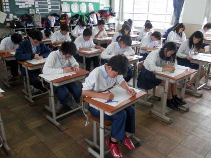 3年生は、現在2時間目の社会のテストに向き合っているところです。