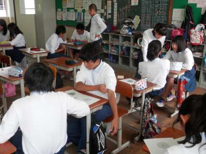 生徒と一緒になって考えました。「直ぐにできるわ!」って思ったのに大間違いでした。結局、この時間は、ほとんどこのクラスに居ることになりました。