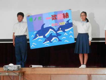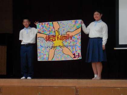 1年生の学級旗は可愛らしいです。学級目標の発表の仕方も元気があって可愛らしかったです。